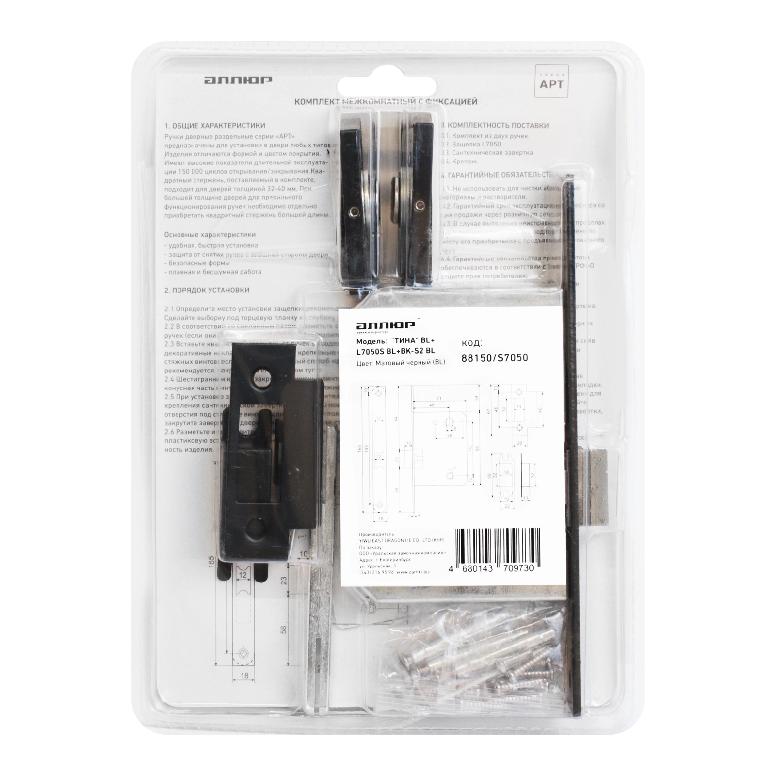 Защелка межкомн. АЛЛЮР "ТИНА" РУЧКА ЧЕРНЫЙ МАТОВЫЙ с фиксатором /15718/