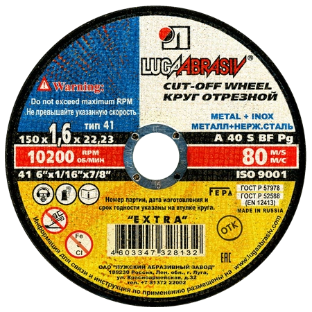 Круг отрезной 150*1,6*22 А40 по мет.